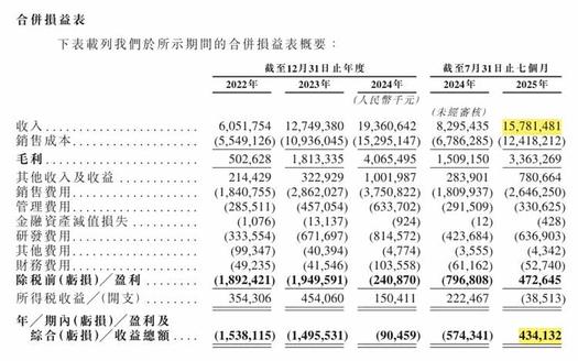 从招股书披露的短期业绩来看,岚图汽车近期的业绩表现确实交出了一份具有阶段性突破的“成绩单”。2025年前7个月,公司实现营收157.82亿元,较2024年同期的82.95亿元大幅增长90.2%。更关键的是,其净利润达到4.34亿元,一举扭转了2022年净亏损15.38亿元、2023年净亏损14.96亿元、2024年净亏损9.05亿元,连续三年亏损的局面。