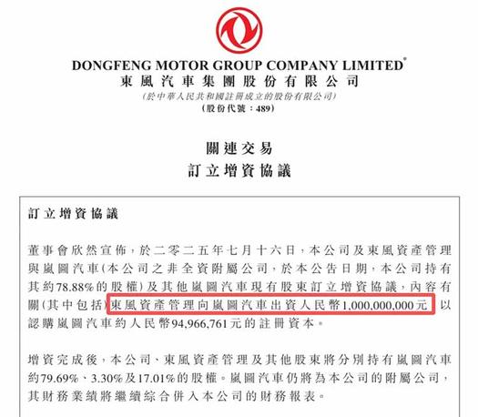 值得注意的是,2025年7月16日,东风集团股份发布公告称,公司及东风资产管理与岚图汽车及其他股东订立增资协议。根据协议,东风资产管理将向岚图汽车出资10亿元,认购约9496.68万元的注册资本。这意味着,岚图7月末降至67%的负债率,并非完全依靠自身的造血能力得以改善,而主要得益于这10亿元的增资。这种依赖非经常性损益的盈利模式,或许在资本市场看来缺乏可持续性,尤其是港股市场对盈利质量的审视向来都更加严苛。