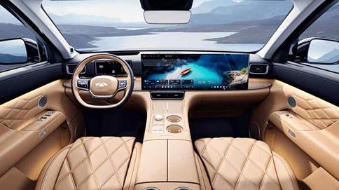 内饰方面此次也很出彩,风云T11配备了小尺寸的内嵌式全液晶仪表盘并搭配AR-HUD抬头显示系统,双辐式多功能方向盘匹配电子怀挡机构,中控台上配备了30英寸的3一体式寰宇屏,非常有科技感。此外,全车内部大面积采用软包材质,例如中控台下方、车门面板,以及一些细节处,整体设计搭配展现出高级感。