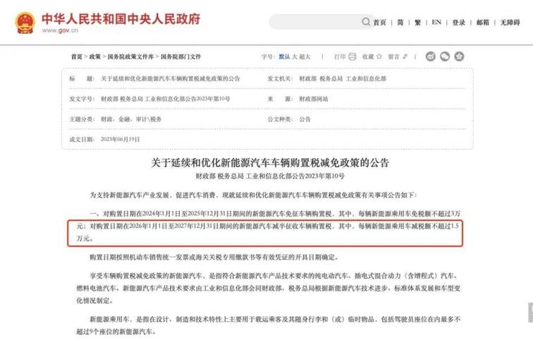 但是从2026年开始,新能源车享受的购置税减免政策将从“免征”调整至“减半”,并且每辆车减免税额不超过1.5万元。