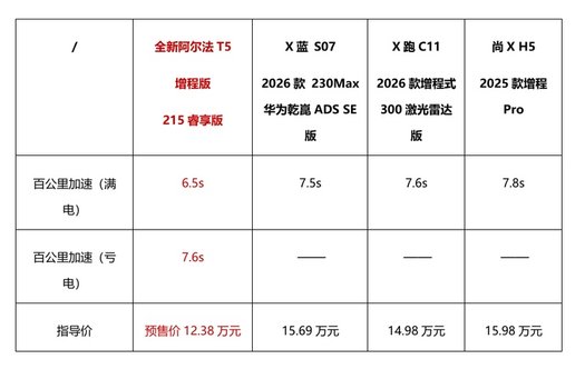 在家庭用户关心的动力方面,全新阿尔法T5增程版峰值功率200kW,峰值扭矩365N·m,满电零百加速仅6.5秒,即使在亏电状态下零百加速仍能保持7.6秒优异成绩,爬坡过坎、高速超车全部游刃有余。无论满电馈电,全新阿尔法T5性能随时在线,“快人一步”尽享百万级别澎湃驾控。