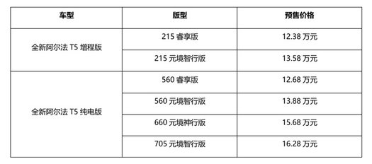 据悉,极狐全新阿尔法T5预售共推出6个版型,包含纯电和增程两种动力形式,预售价格12.38万元—16.28万元,以更年轻的设计风格、更强的动力续航、更智能的操控、更舒适的驾乘和天花板级的安全健康,为年轻家庭用户带来了中级SUV的新选择。即日起通过极狐APP或小程序支付2000元定金,购车可以享受整车5年或12万公里质保、三电终身质保、3年免费不限量数据流量、终身免费OTA升级、价值4999元充电桩安装抵扣券等四重礼遇,再次刷新中级SUV的价值标准!