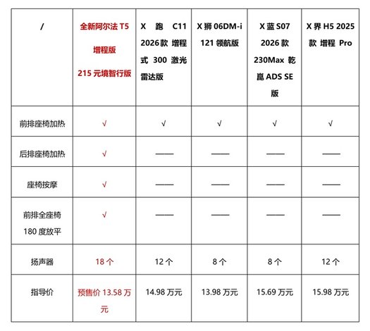 从年轻时尚外观设计到北汽神擎增程的硬核加持,从全系标配宁德时代电池到全球首个搭载骁龙8775舱驾一体解决方案,从麦格纳世界级品质到“近0醛0苯”健康座舱,全新阿尔法T5“一车满足全家需求”,让中级车“不再中级”,带给众多年轻家庭时尚动感、驾乘自由、智能舒适、可靠安全的SUV新体验。