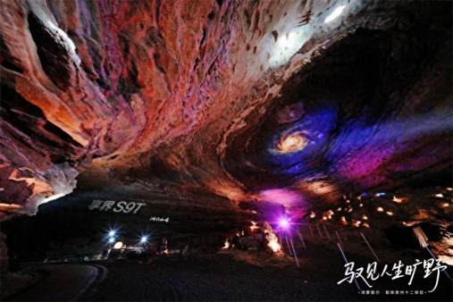 在主展区,享界S9T极具未来感的光语设计,在洞内探照灯的映射下,与瑰丽的岩壁光影交织,宛如一件置于自然美术馆中的艺术品,瞬间成为全场最瞩目的打卡点。
