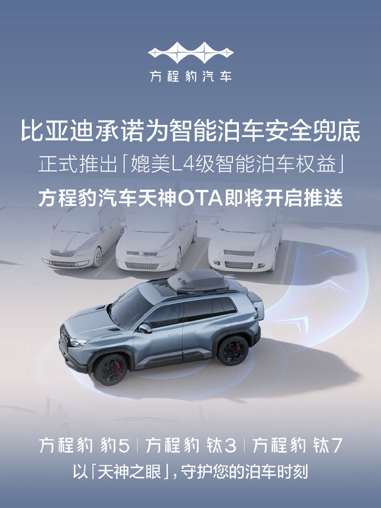 天神之眼不光有安全的体验,更有安心的承诺。今年7月比亚迪正式官宣,用户使用泊车辅助时造成的任何事故,比亚迪都会全部兜底,彻底解决了大家使用泊车辅助时的后顾之忧。