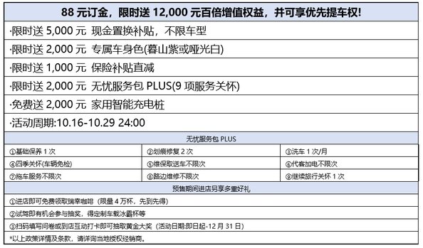 伴随预售价的发布,北京现代也同步推出了EO羿欧极具诚意的限时权益:支付88元订金,限时送12,000元百倍增值权益,并享优先提车权。