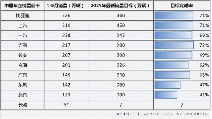 金九银十冲刺期:中国车企最新销量与目标完成率同步披露