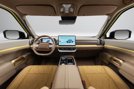 在内饰设计上,雷博杨同样展现出年轻设计师的创造力与情感温度:“所有的这些材质搭配,共同印证了Frontier Pro作为一位户外潮流伙伴的灵魂:它既能带你去探索无垠的旷野,也能在你归来时,用一个极致舒适和宁静的座舱包裹你。这才是真正的移动的头等舱,它从自然中诞生,被科技所赋能。”