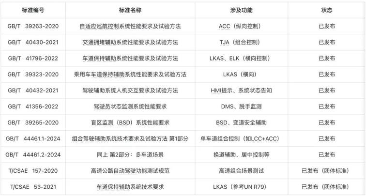 目前中国已经发布多个辅助驾驶相关的推荐性标准。