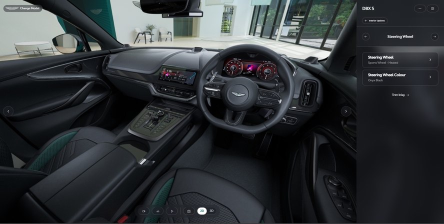 在视觉呈现之外,新配置器首次引入了虚拟盖顿总部展示环境。这一场景忠实还原了阿斯顿·马丁位于英国盖顿总部中庭,这里曾见证品牌从经典跑车、经典车、概念车的每一次辉煌。客户可在这一象征品牌精神的空间中完成车辆配置,使整个过程不仅是技术操作,更是一场与品牌文化的对话。
