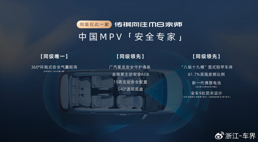 无论家用还是商用,安全是“底线”,更是豪华的基石。广汽始终坚持安全造车,依托自研的“星灵安全守护体系”,为向往M8宗师构建起全维度安全防线。
