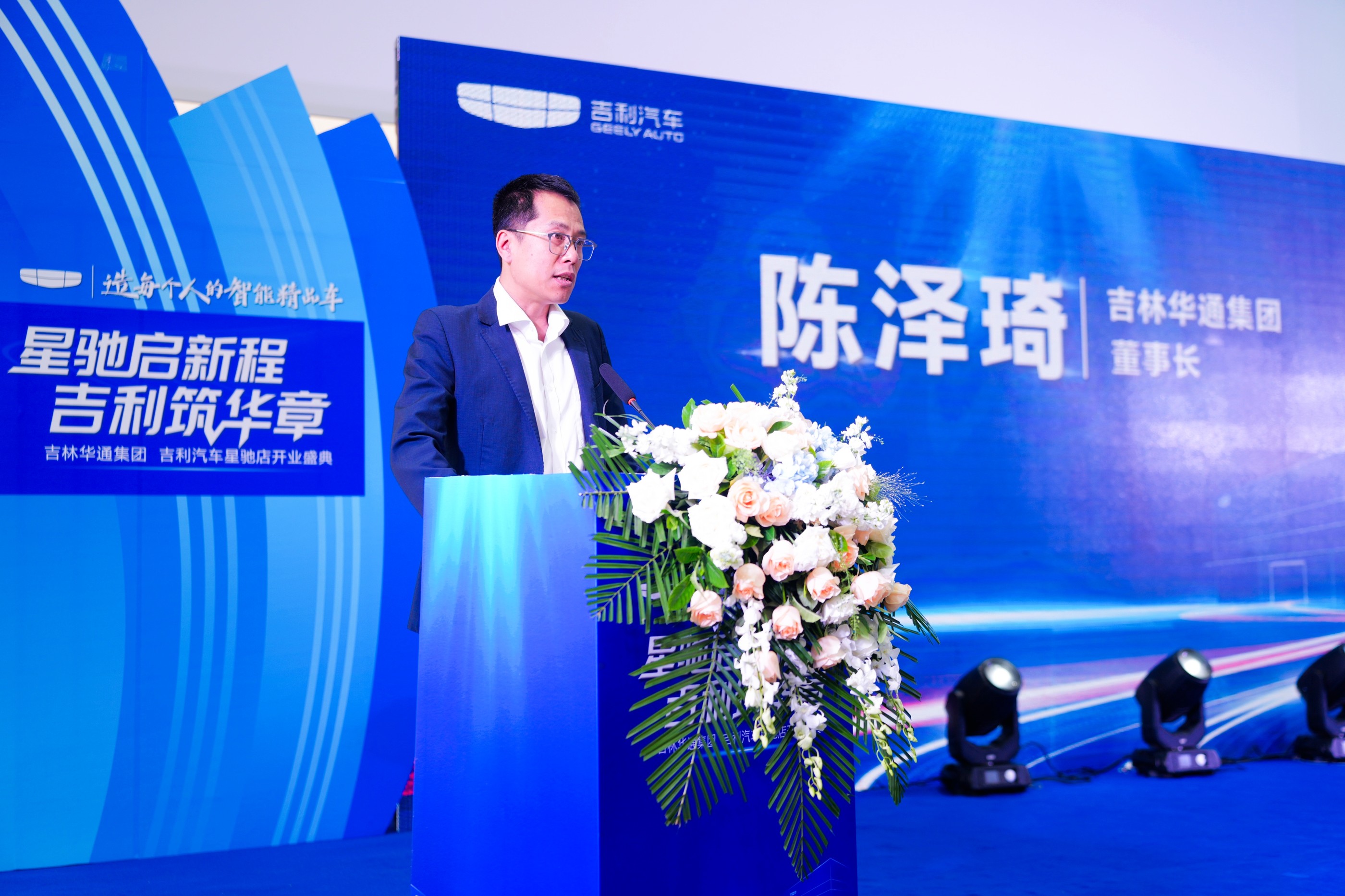 吉林华通集团董事长陈泽琦回顾了集团25年的发展历程:从2001年起步,到如今涵盖吉利汽车、奇瑞汽车等五大品牌,始终以“处处为您着想”为服务理念。他强调,吉利汽车星驰店的开业是集团“用心服务”的延续,未来将以专业团队、全周期服务,让春城用户感受科技出行的温度。