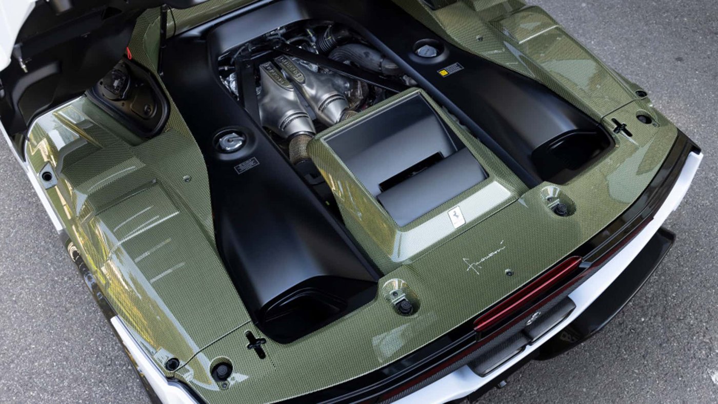 命名为“SC40白”的车漆色调冷峻,与内饰中碳纤维-凯夫拉的视觉质感相呼应。发动机盖上的负刻法拉利字样透出下方的碳纤维材质。燃油加注口与充电接口采用拉丝铝制,而“SC40”标志仅低调地出现在车辆右侧。