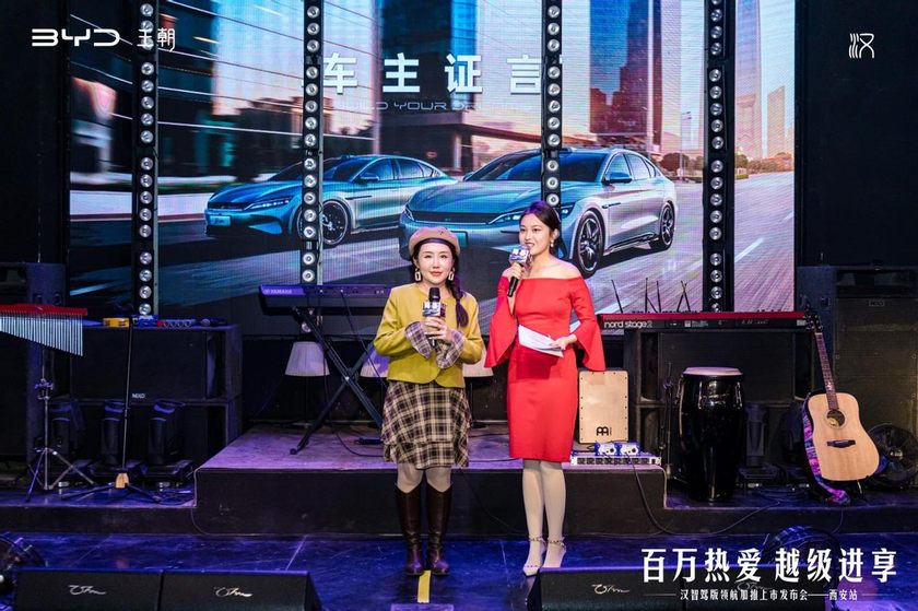 活动前期,邀请到了2名西安当地知名媒体老师,站在专业的角度从驾乘感受、市场反馈等方面拍摄了评测视频,同时活动现场,也邀请到媒体及车主代表上台发言,谈谈他们对于汉智驾版这辆车的见解及使用感受。