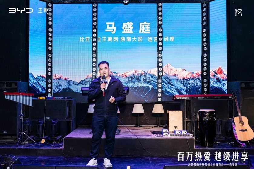 一场酷炫的镜面舞为本场活动拉开序幕,比亚迪汽车王朝网陕南大区 大区经理陈聪聪先生登台致辞,他分享到比亚迪汉用五年时间完成了从 0 到 100 万辆的跨越,成为首个突破百万销量的中国品牌中高端轿车。今天加推的汉智驾领航版,是对百万用户信任的回应。同时这种 “满配即标配” 的诚意,正是比亚迪对 “越级进享” 的最佳诠释。