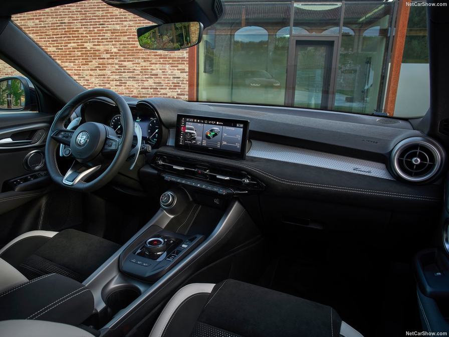 车内部分,Tonale的变化离不开材质的运用,阿尔法·罗密欧带来新方案,比如螺纹织物座椅、红色皮革座椅和黑白双色拼接的麂皮座椅,高配会有加热、通风和腰部支撑调节,仪表板、门板和扶手也多了缝线装饰。新设计的中控台,Tonale用10.25英寸触控屏提升交互便利度,同时新造型的电子旋钮排挡,也让路虎车迷想起过往的时光。
