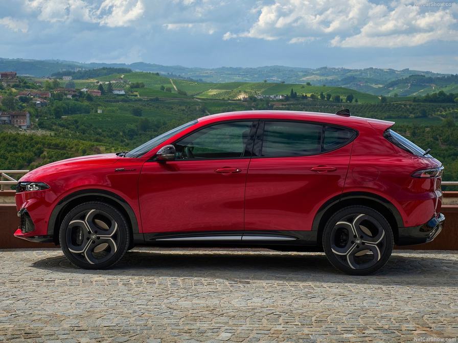 Tonale的侧身和尾部改变幅度较小,主要修正了车身比例,依然是短前悬、溜背车尾的造型,配合黑色车顶的选项,运动感十足,但同时也压缩了座舱空间。阿尔法·罗密欧还提供新样式19英寸轮辋,Sport特别版有三叶草样式的20英寸轮辋,个性十足。