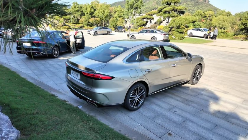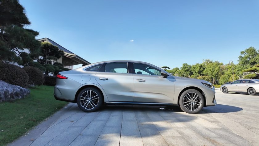 来到车侧,贯穿式腰线从车头延伸至车尾,让车身视觉效果更显修长;全新设计的轮圈搭配规格为235/45R18的轮胎,不仅提升了运动感,还增强了行驶稳定性;侧窗边缘的镀铬装饰则为车身增添了一丝精致感,上下两条锋利的腰线进一步强化了整车的运动姿态。