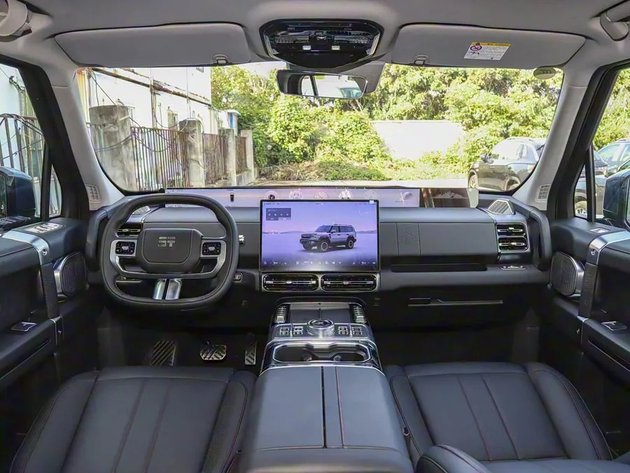 车内采用了大面积的皮质包裹,多处细节加入镀铬元素进行点缀,并配备了15.6英寸悬浮式中控屏,35.4英寸贯穿式显示屏(天际屏)位于中控台最上部,且在实体按键部分也做了较多的保留,越野部分的控制则毫无悬念的保留在了触手可及的位置,值得一提的是该车也采用了近年才开始逐步流行的怀挡设计,而传统换挡杆的位置则变成了全地形系统和越野辅助功能的布置区域。新车搭载椭圆形三辐方向盘,还配备了原地掉头功能和航行技术。该车有五座和六座布局,可以对不同需求的人群有针对性的照顾和选择,并配备7.1.4哈曼音响系统、AQS空气质量监测系统、超大纵深冷暖箱及外挂制氧机长途弥散供氧。