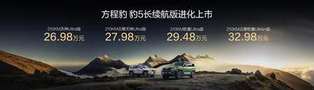 10月20日,方程豹汽车“豹5长续航版”焕新上市,价格26.98-32.98万元;豹8大五座版加推上市,价格37.98-40.78万元。方程豹以“人人可野·拥豹新生活”为核心主张,以豹5的10万台销量达成,以及品牌的20万台销量达成,宣告着电驱越野时代的全面到来。豹5持续蝉联硬派越野销量冠军,登顶“越野新王”,豹8则以引领40万级高端新能源SUV的姿态成为比亚迪华为联手打造的“稀缺旗舰”。本次方程豹豹系列产品,实现了DMO平台的DMO+升级、华为乾崑智驾的ADS 4升级、以及比亚迪智慧生态等多项顶级核心科技的全面升级,并带来续航、安全、舒适、操控等全维度的系统性优化,豹系列焕新引旷野出行。