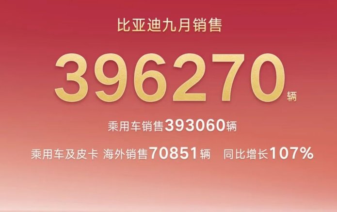 相比之下,比亚迪9月销售新能源汽车396270辆,相比去年同期的419426辆,同比下滑5.5%。这是比亚迪自2024年2月以来,首次出现单月销量同比下滑,也是其自2024年3月以来,首次失去中国车企月度销量冠军的位置。