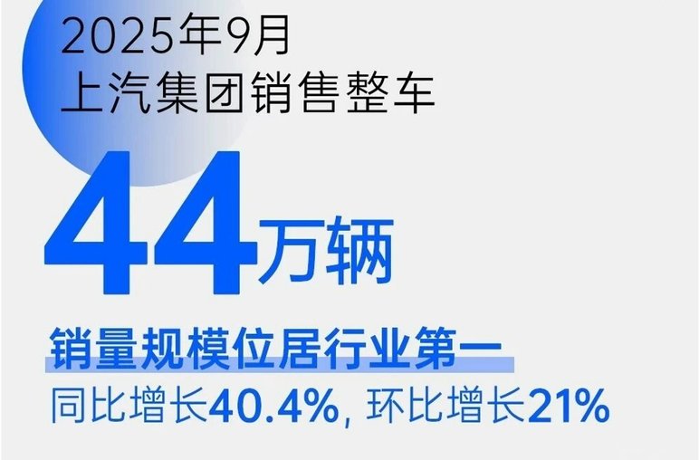 9月份,上汽集团交出了一份亮眼的月度成绩单:9月销量达44万辆,同比增长40.4%,环比增长21%,排名重回行业榜首。至此,上汽在2025年已经实现月度销量同比“九连涨”。