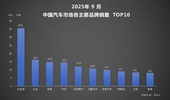 其中,比亚迪汽车(王朝丨海洋)品牌9月销量达35.6万辆,1 - 9月累计销量298.5万辆,在全市场单一品牌销量排名中稳居冠军之位,持续巩固其头部地位。