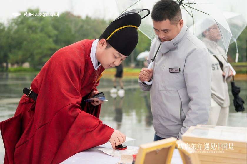 别开生面的签到环节为嘉宾开启了一段盛唐穿越之旅。现场不仅设有「不倒翁」互动表演、拓印DIY等唐风雅集体验,更创新性地以「通关文牒」集章任务,引导嘉宾深度感受「唐、风、古、乐」四大主题互动区。嘉宾在品鉴中国星双旗舰车型的同时,亦能体验人机互动等现代科技,亲身感知吉利中国星“承袭东方智慧,融合全球科技”的品牌内涵。