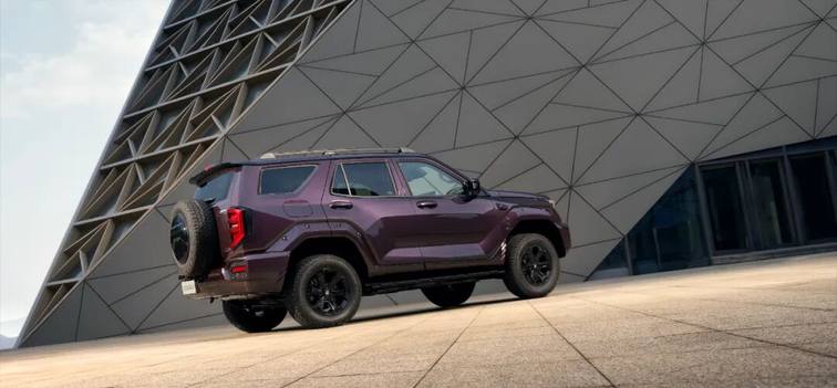 来到车侧,新车的轮眉仍采用外露式铆钉设计,机械门把手和固定脚踏板则给人安心、可靠之感。再看车后,备胎外挂方式有所简化,后包围设计亦配合前包围进行了更新。此外,“能量翼”尾灯让人过目难忘,新增“小蓝灯”则彰显着该车辅助驾驶能力的进化。