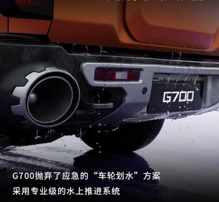 作为对比,路虎揽胜的涉水深度为900mm。该系统采用双动力推进设计,其800V推进器推力为3000N,可在2米水深下保证120分钟密闭性。得益于此技术,纵横G700水上航速可达7km/h。