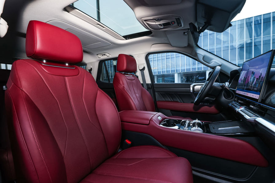 在进入高速巡航等稳态工况后,2.0T发动机会自动锁定在最佳热效区间,通过行星排功率分流结构将冗余动力转化为电能,实现“边驱动边充电”,同时59.05kWh电池包也可支撑200km WLTC的纯电续航。