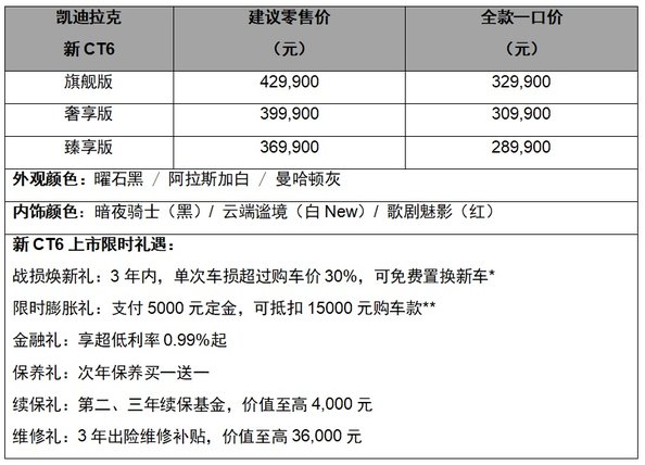 全款一口价28.99万起 凯迪拉克新CT6上市