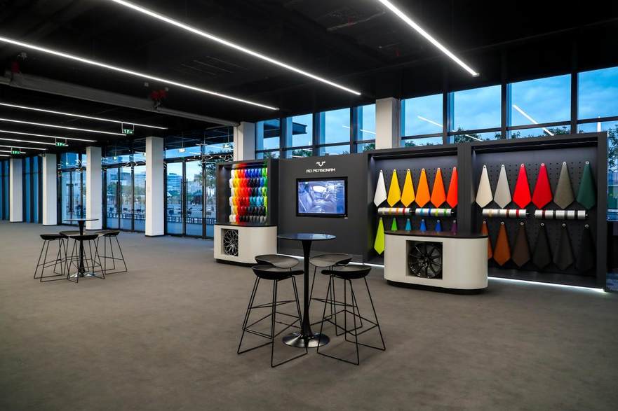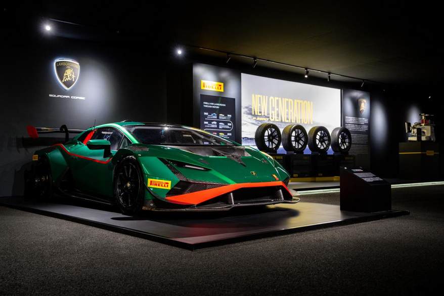Squadra Corse赛事运动部门区域陈列着Huracán Super Trofeo EVO2赛车,象征着兰博基尼在赛道领域的热血基因与不懈追求。