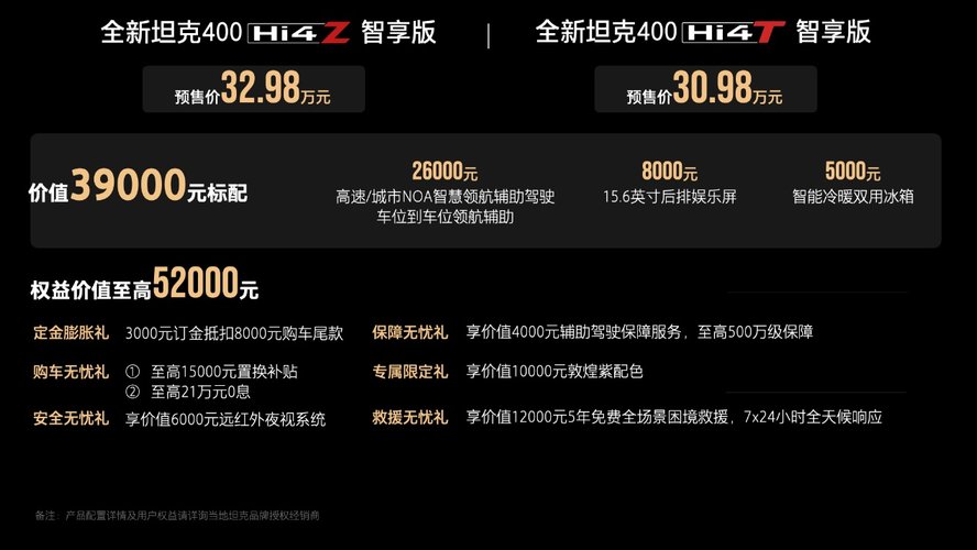 家人们谁懂啊!当硬派越野开始卷“智能座舱”和“少女心配色”,这波操作直接把我看傻了!新款坦克400智享版30.98万起的预售价一公布,评论区瞬间分裂成两派:越野老炮嫌“不够纯粹”,都市潮人喊“终于等到你”。作为常年穿梭在城市与荒野之间的女司机,我倒觉得这波升级藏着坦克最精明的算盘——它根本不是在改款,而是在重新定义“全能越野车”。