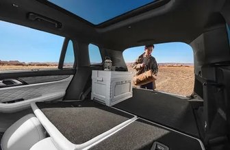 2026款领克09空间的灵活百变性同样出众。前排靠背放倒与二排组成“双人沙发床”,松弛感拉满,无论工作日午休,还是户外躺卧刷剧都格外惬意。二排座椅立起时,后备箱容积达691L,轻松容纳全家出行装备;放倒后,后备箱可扩容至1522L,铺上床垫就是同级最大的“两米豪华大床房”,搭配全景天窗,自驾出游于山野间尽享自由与浪漫。