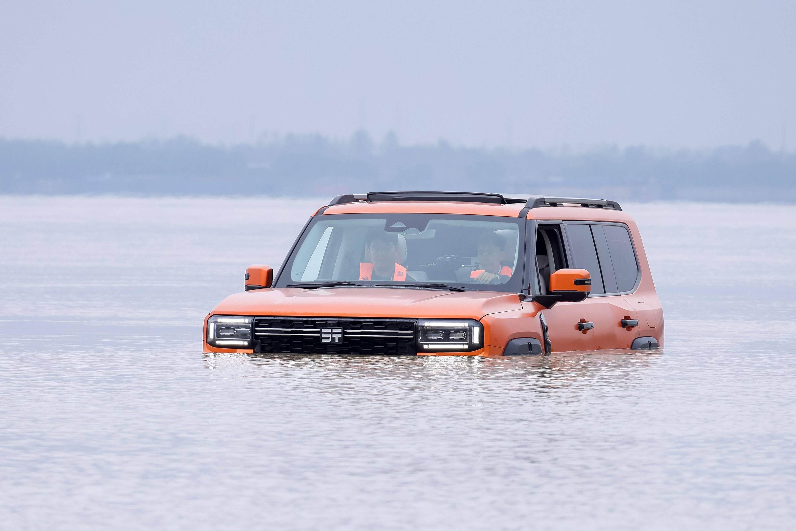 另外,该车的全球首创纵横方舟两栖技术,具备IP68级防水(2米水深浸泡48小时仍可启动)、800V推进系统(最大航速4.5节),实现970mm涉水深度,支持纯电驱动浮水航行,在水中也能展现出非凡的能力,不仅能像船只一样在水面漂浮,还能以较为稳定的速度前行,真正实现了“海陆两栖”的出行方式。