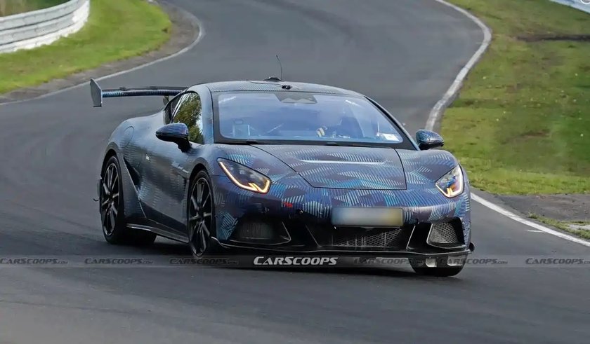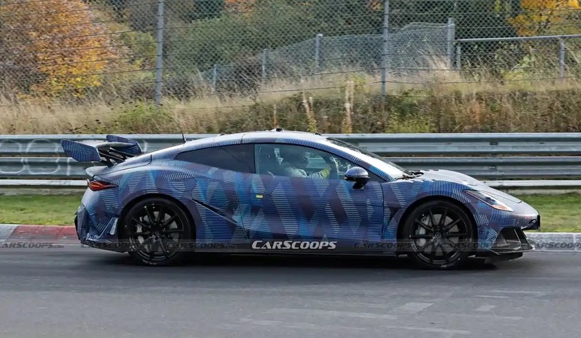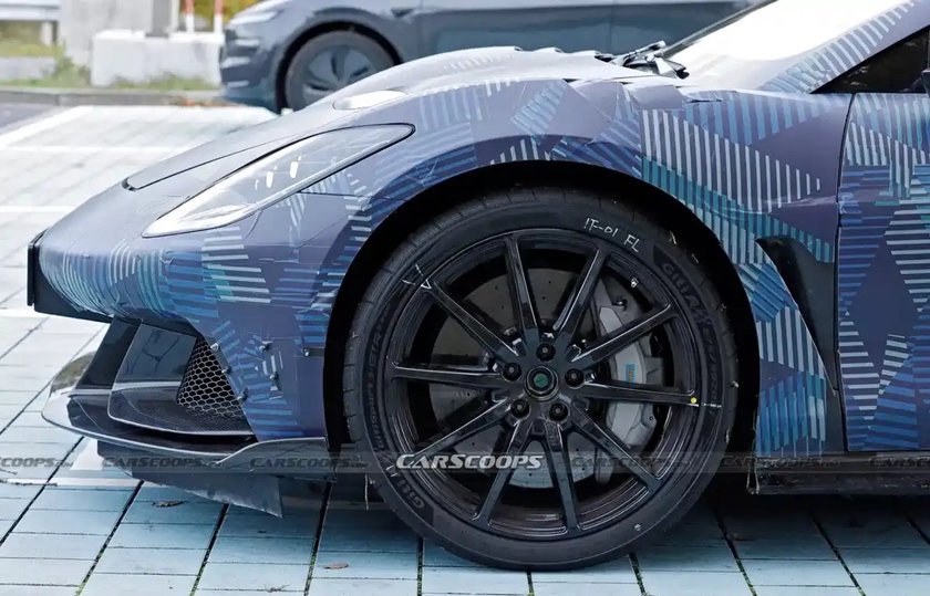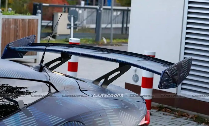 从图中可以看到,新车的整体造型依旧保留了此前概念车的设计,大家尤为关注的前扰流板和后固定扰流板都得到了保留,战斗气息不言而喻,不过笔者觉得这些上市后可能要选装。另外,车身上随处可见的空气动力学套件,也能看出新车的性能车定位。轮胎则是佳通Sport GTR3轮胎,前轮胎宽275,后轮胎宽325。