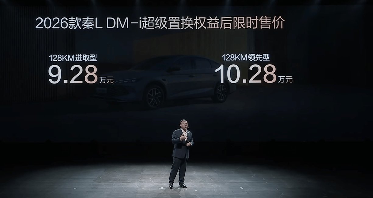 10月23日,2026款比亚迪秦L DM-i正式宣布上市,其价格为128KM进取型9.28万元,128KM领先型10.28万元。