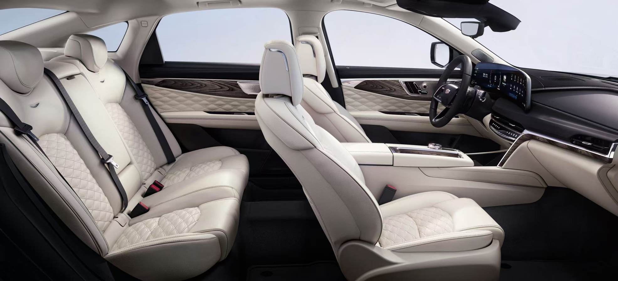 新CT6内饰采用源自北美天然牧场的Fine Nappa半苯胺真皮包裹,经轻涂饰工艺留存真皮本真的沉醉光泽与细腻肌理,更嵌入凯迪拉克经典“V”形符号菱形格纹,让匠心工艺在触感与视觉中双重呈现。甄选天然白栓木饰板,自带温润自然的触感与高密度质感;高级拉丝真铝饰条历经多道精密工序,哑光质感与细腻纹理交织,在光影流转间透出金属独有的高级格调。所有材质均经过自然环境严苛考验,耐得住时光淬炼,始终保持卓越品质。
