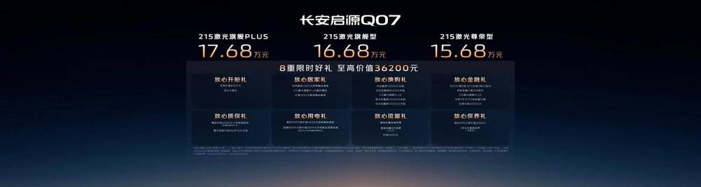 10 月 10 日,专为家庭打造的智能 SUV—— 长安启源 Q07 天枢智能激光版正式上新,带来 215 激光尊荣型、215 激光旗舰型、215 激光旗舰 PLUS 三款车型,上新价定格在 15.68 万元 - 17.68 万元。