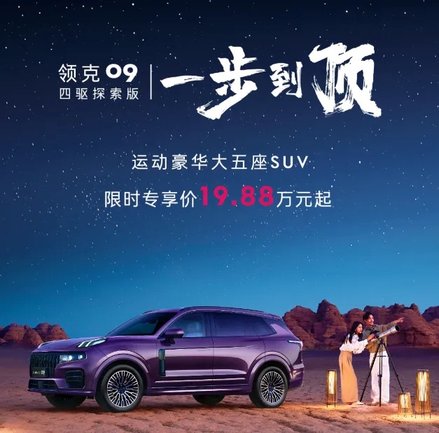 限时19.88万元起,同级唯一全时四驱 领克09 四驱探索版上市