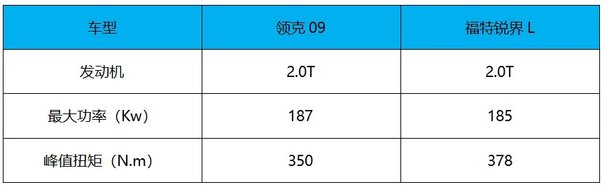 领克09搭载Drive-E 2.0T涡轮增压发动机+48V轻混系统,匹配爱信8AT变速箱,最大功率187千瓦,峰值扭矩350牛·米。福特锐界L搭载2.0T EcoBoost发动机,匹配8AT变速箱,发动机最大功率185千瓦,峰值扭矩378牛·米,功率和扭矩跟领克09各有优势,零百加速二者也在伯仲之间。底盘悬架部分的结构采用的是前麦弗逊+后多连杆独立悬架,前悬比领克09稍微差了点意思。