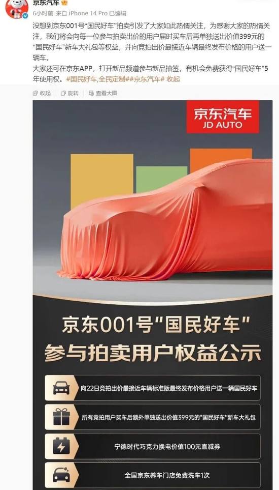 面对出人意料的拍卖结果,京东汽车在第二天迅速做出回应。除了表示天价“非本意”外,京东还宣布了两个决定:向每一位参与拍卖出价的用户赠送价值399元的“国民好车”新车大礼包,并向竞拍出价最接近车辆最终发布价格的用户送一辆车。这些举措被互联网分析师张书乐评价为“参与感和便宜混搭的营销打法”,用一个概念就带动了用户们的游戏精神,是个高分营销。确实,单从传播效果看,这场拍卖无疑成功吸引了大量关注。“京东造车”话题冲上热搜,超过20万人的围观为京东即将正式推出的汽车业务做了一次免费宣传。