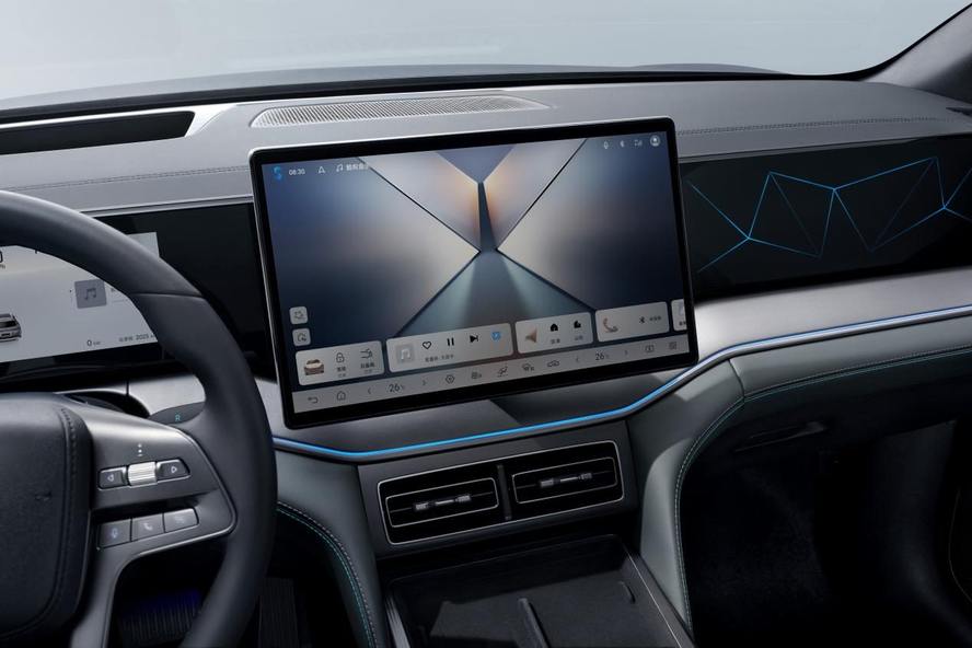 2026款宋L DM-i搭载15.6英寸中控屏、10.25英寸仪表盘以及26英寸W-HUD,多屏联动营造了不错的科技氛围。车机内置丰富生态,搭载支持四音区语音的AI全场景智能语音,一次唤醒即可发出多条指令,加上智能上下电、手车互联、手机NFC钥匙、比亚迪智能云服务等功能,进一步提升了用车的便捷性。