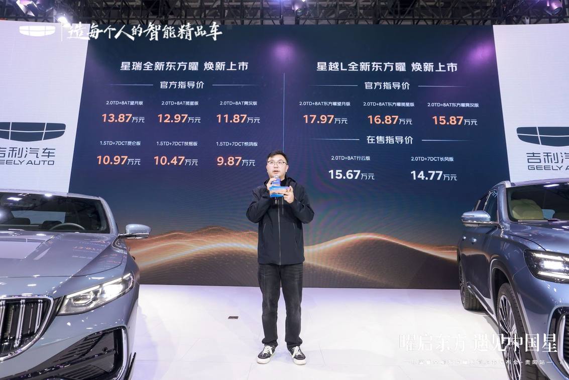 此次上市的新车包括星瑞与星越L两大车型,官方指导价9.87万至17.97万元。其中,星瑞全新东方曜焕新2.0TD+8AT与1.5TD+7DCT两种动力组合共六个版本。