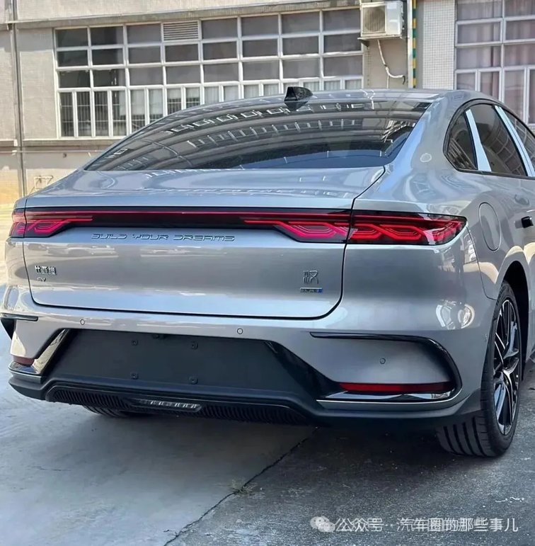 车身侧面,新车拥有凌厉的腰线以及隐藏式车门把手,轮圈则使用双色设计。车尾部依旧是贯穿式的尾灯组,尾灯光源主题呈现中国结样式,点亮后具有不错的辨识度。车身尺寸方面,DM-i和EV型号的长宽高均为4995/1910/1495毫米,轴距2920毫米。