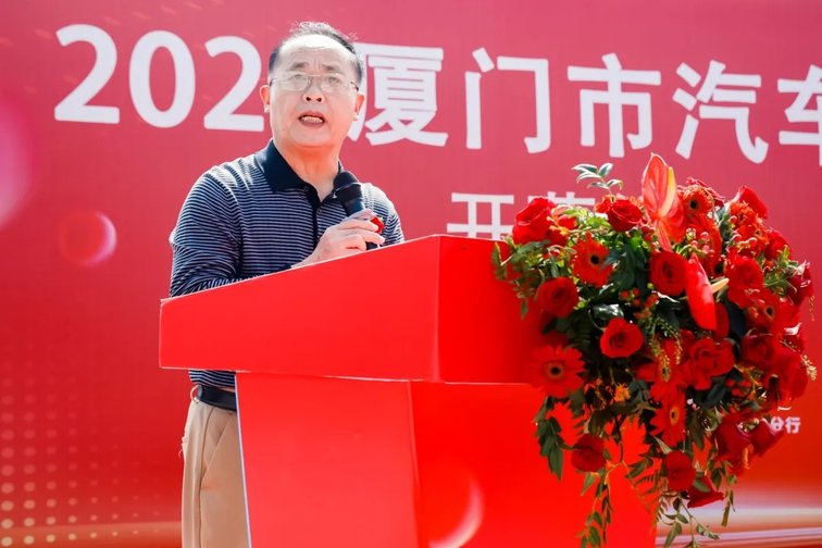 厦门市汽车流通协会会长周加荣致辞。周会长表示,本次汽车下乡活动是响应国家政策的具体行动。在参选车企车型上,突出新能源车型主题,同时回应市场需求,精选部分燃油车品牌参与,旨在为广大居民提供更多更好、更实惠的购车服务。周会长对翔安科技和工信商务局给予的指导和支持表示感谢,对金海街道办事处的协调保障,相关单位和合作伙伴的鼎力支持以及各汽车品牌企业的积极参与致以谢意,表示厦门市汽车流通协会将继续发挥桥梁纽带作用,联合各方力量,持续推动汽车下乡活动深入开展,真正将“放心消费”体现在行动上,为提振消费, 振兴乡村贡献力量。