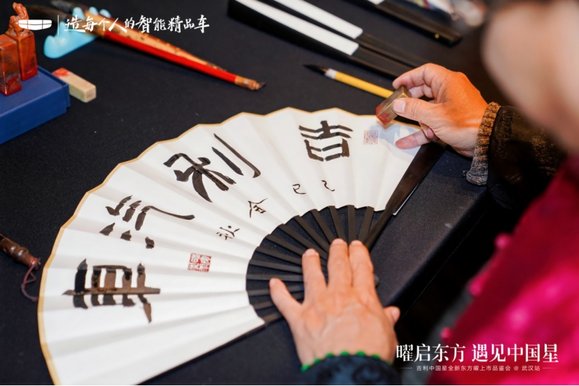 作为本次品鉴会的 “文化亮点”,折扇书法体验区吸引了众多嘉宾驻足参与。活动特邀书法名家现场挥毫,以笔墨为媒,将 “东方曜” 的美学理念与传统书法艺术相结合,为嘉宾定制专属国风折扇。让嘉宾们在墨香与纸韵间感受东方文化的雅致,也让吉利中国星 “以东方美学诠释高端出行” 的品牌主张更加深入人心。
