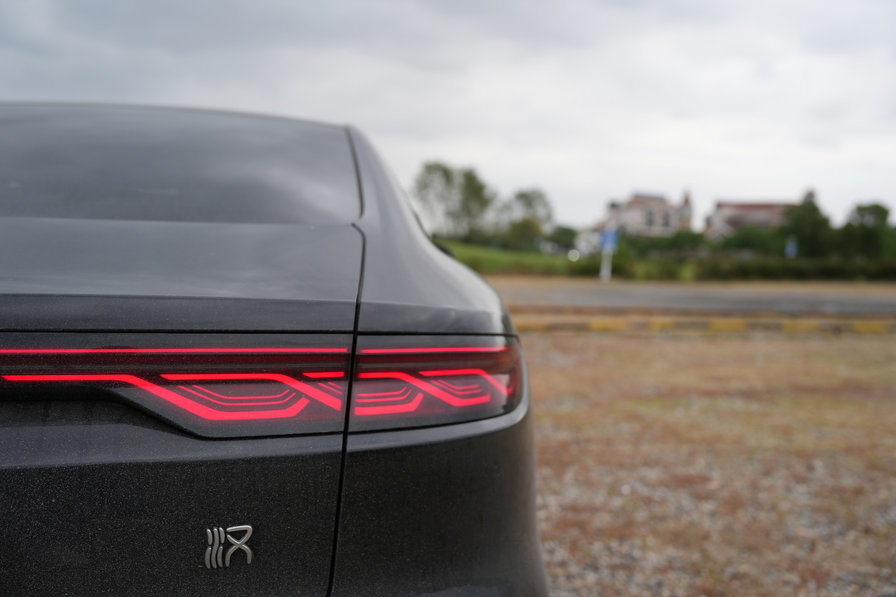 再看车尾,当年我颇为惊叹的尾灯,如今依旧好看。灯组造型取自汉代漆器上的云纹,红得浓却不艳,像是古时宣纸上晕开的朱砂。点亮时,灯带的走向从中间向两侧舒展,几条红飘带相互缠绕亦不失秩序,就像敦煌壁画里的飘带,我只能用网友的经典评论:雅!