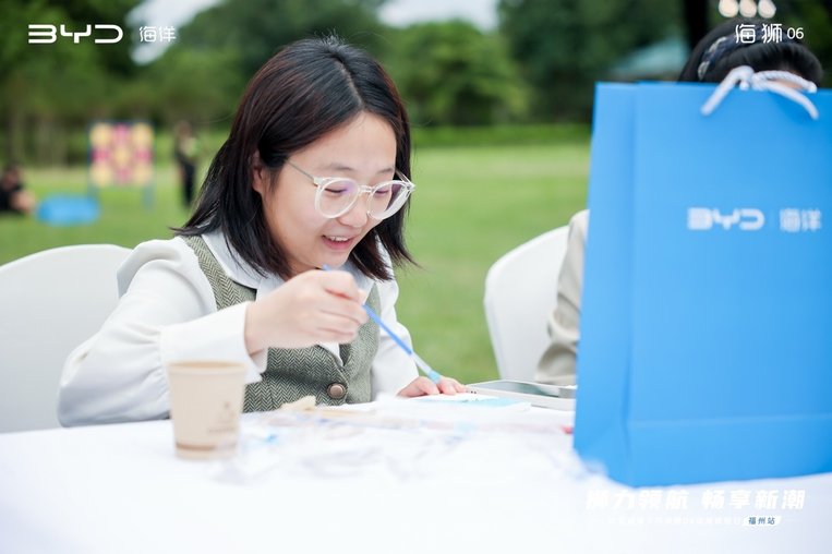 核心试驾环节,专业教练详细解读环绕酒店心湖岛的 2.7 公里试驾路线及安全注意事项,嘉宾分组驾车出发,在绿荫掩映、湖景相伴的道路上,亲身感受海狮 06 平顺的驾控体验与灵敏的动力响应;同步开放的智能泊车体验区,设置狭窄垂直车位、断头路车位、T 型停车位等多元场景,充分展现车型智能泊车功能的便捷性与实用性,有效解决日常停车痛点。试驾之余,互动 DIY 区成为嘉宾放松交流的热门区域,现场提供 “梦幻海洋瓶”“海洋感官盆”“肌理画” 三类手作项目 ——“梦幻海洋瓶” 以透明瓶子、彩砂、贝壳打造微型海洋景观,“海洋感官盆” 通过沙、水、彩石等元素带来多感官体验,“肌理画” 以创意笔触勾勒自然与海洋主题,嘉宾在动手创作中深化对 “海洋网” 品牌调性的认同,现场氛围轻松愉悦。